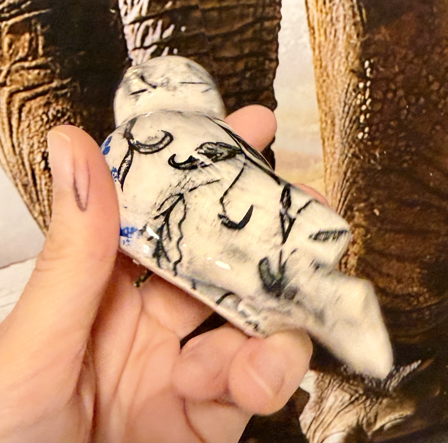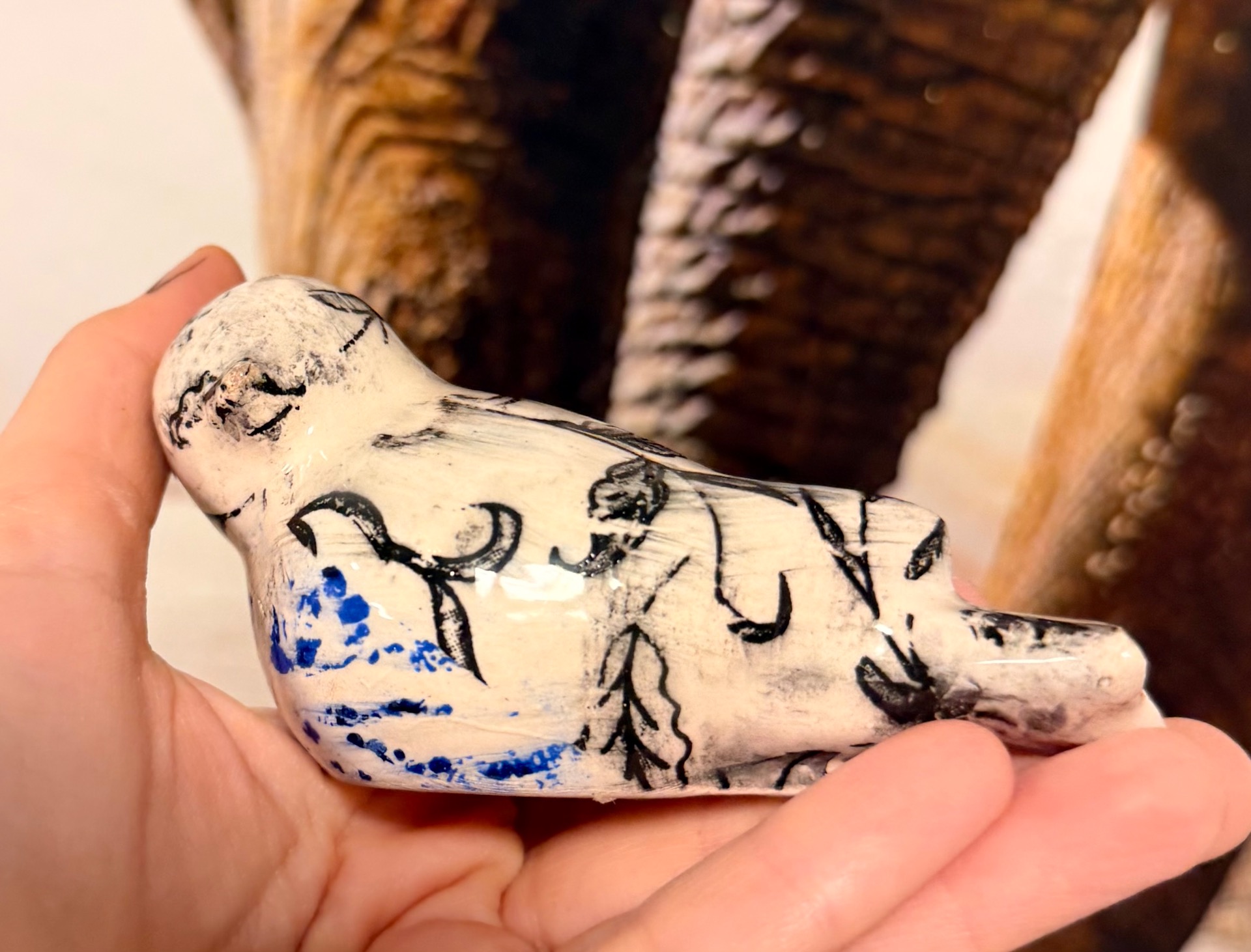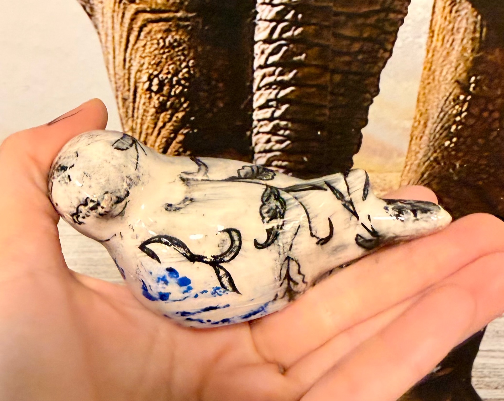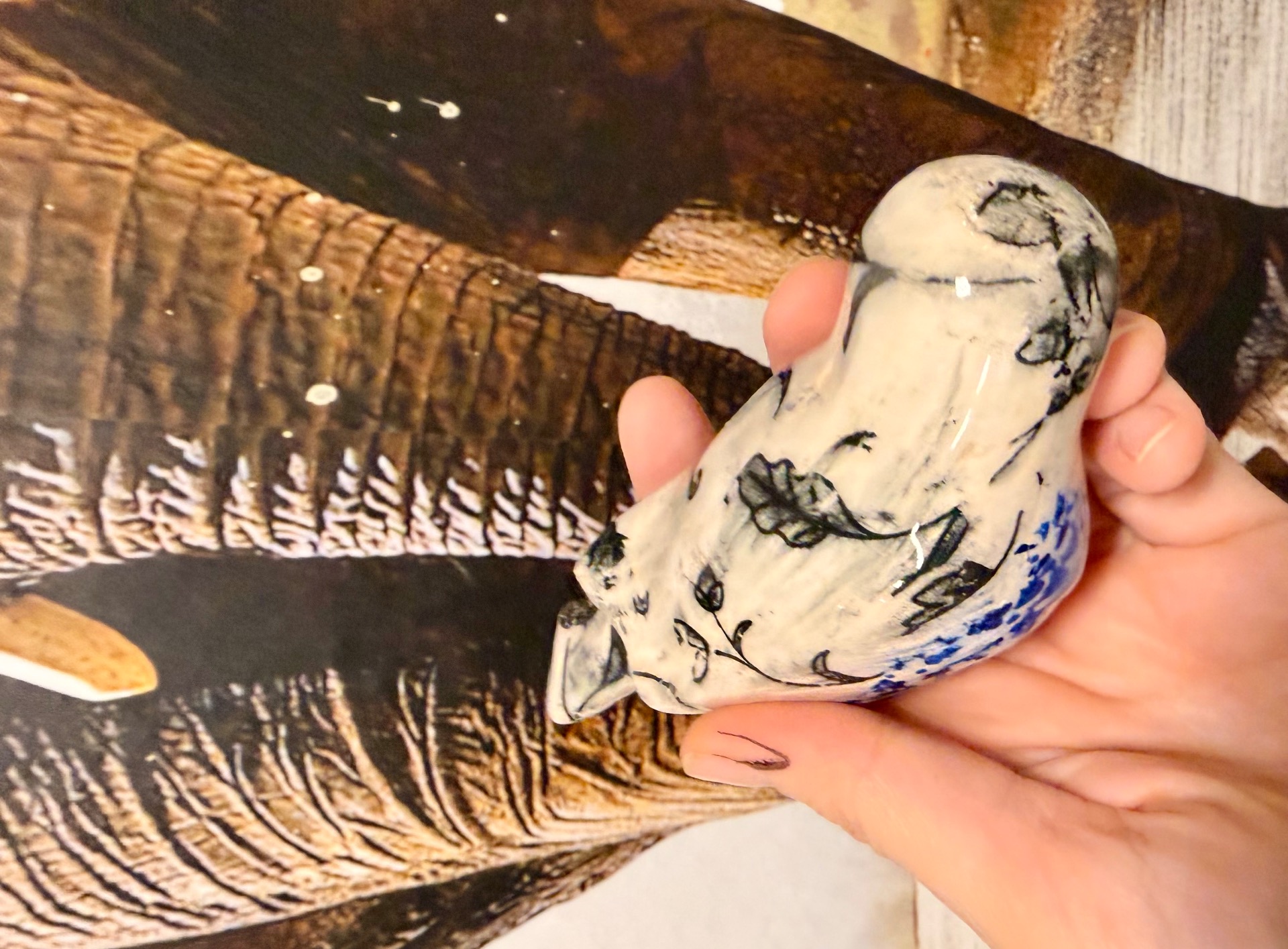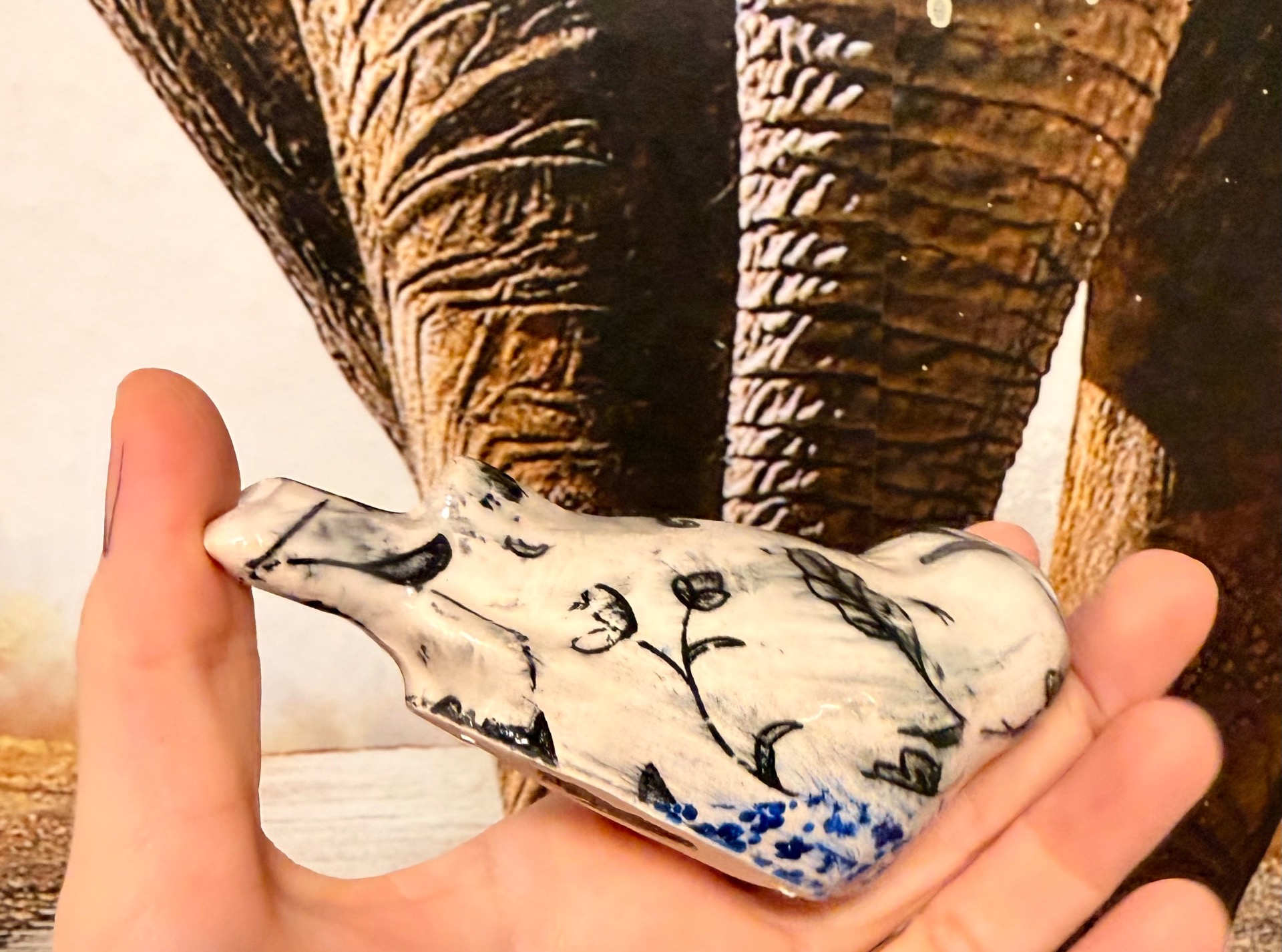 Ručně vyráběné keramické výrobky po přežahu i ostrém výpalu glazury, pečlivě zabalené pro maximální ochranu při přepravě. Na fotografiích je vidět poměr velikosti k ruce i způsob balení. Tapeta na pozadí není součástí produktu.