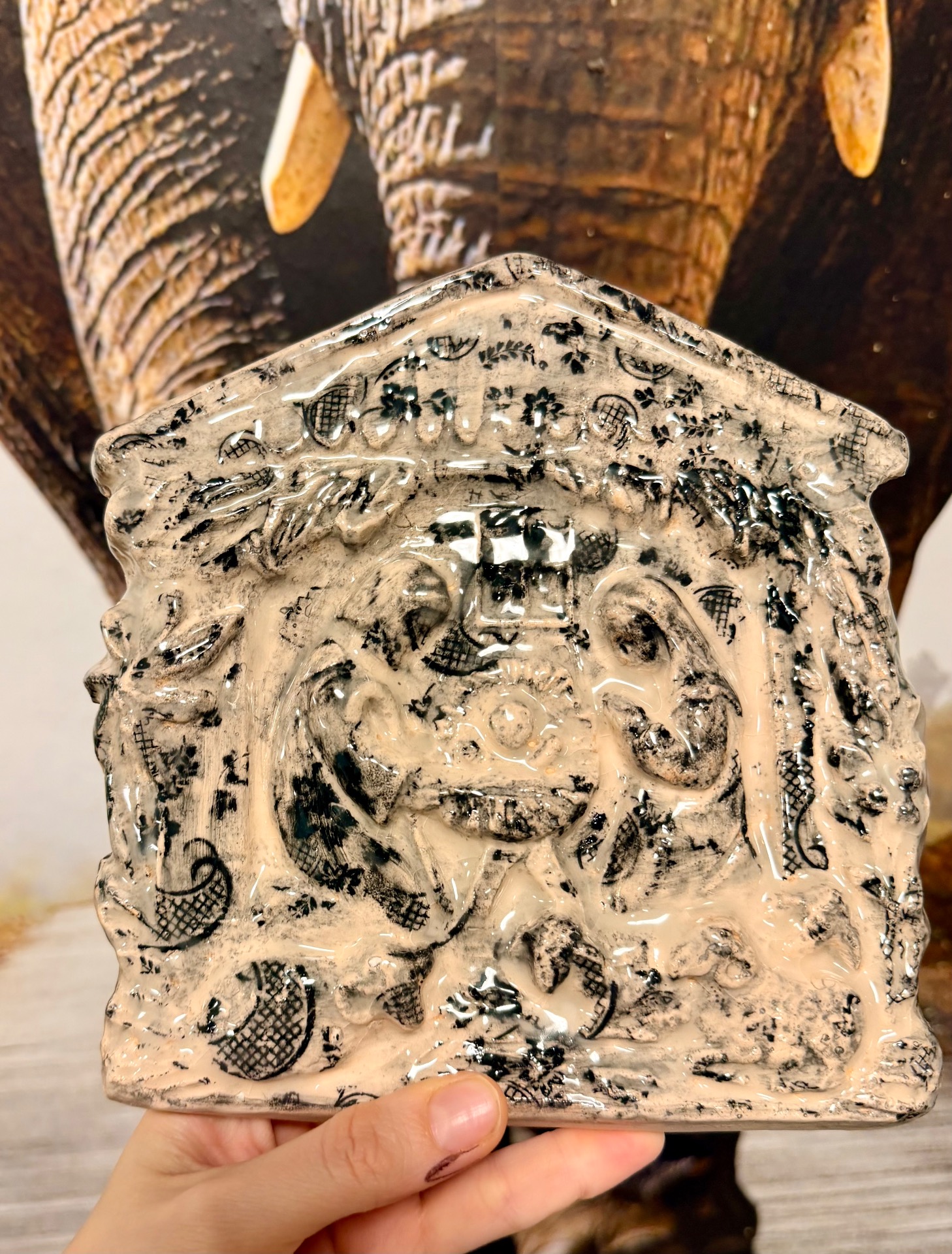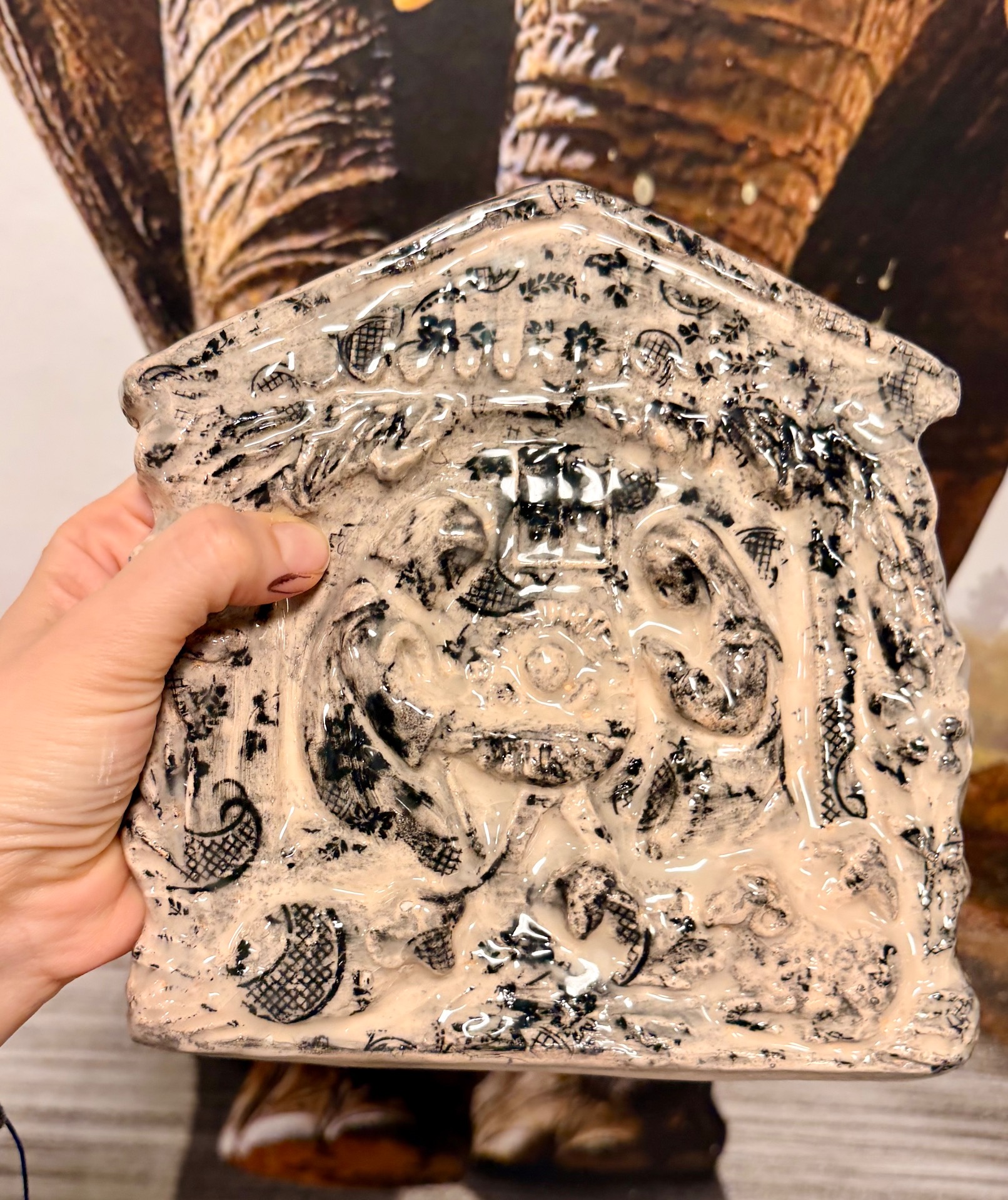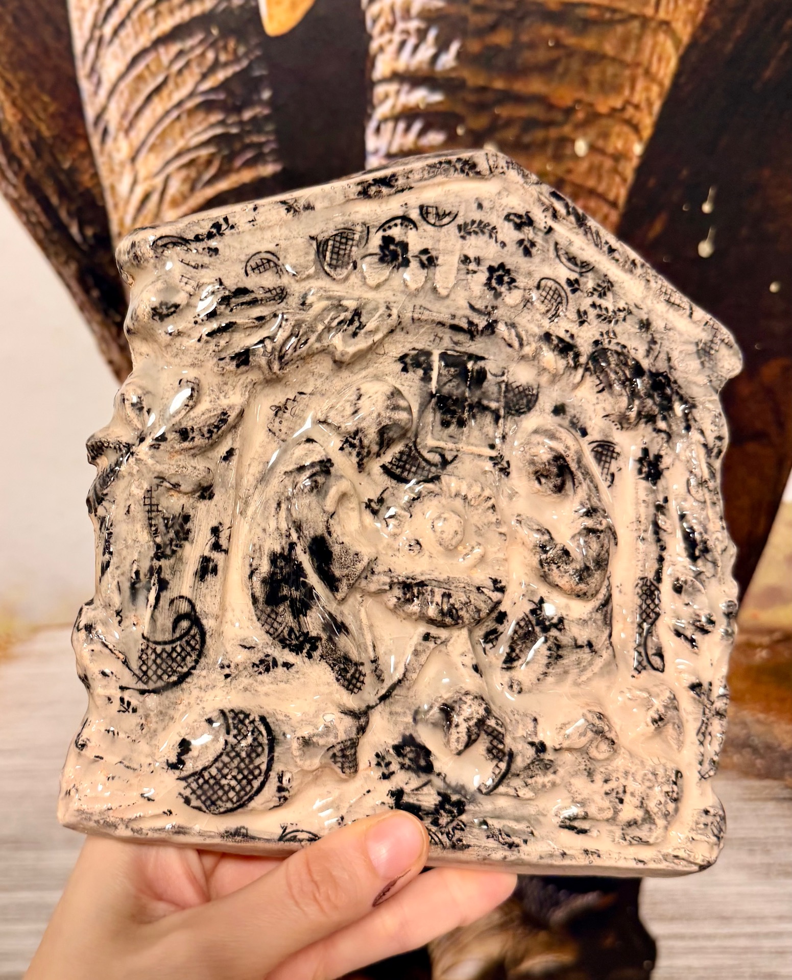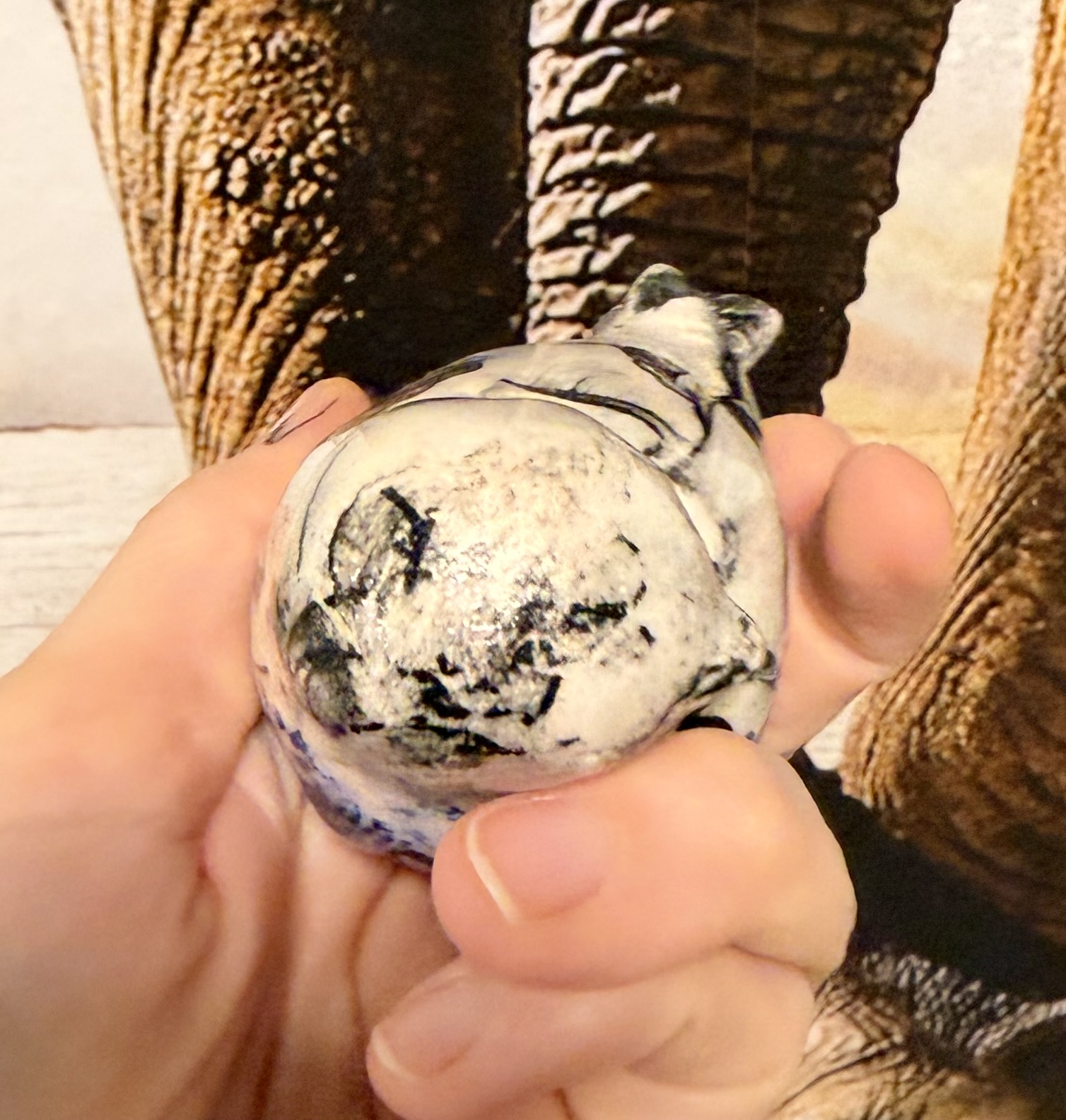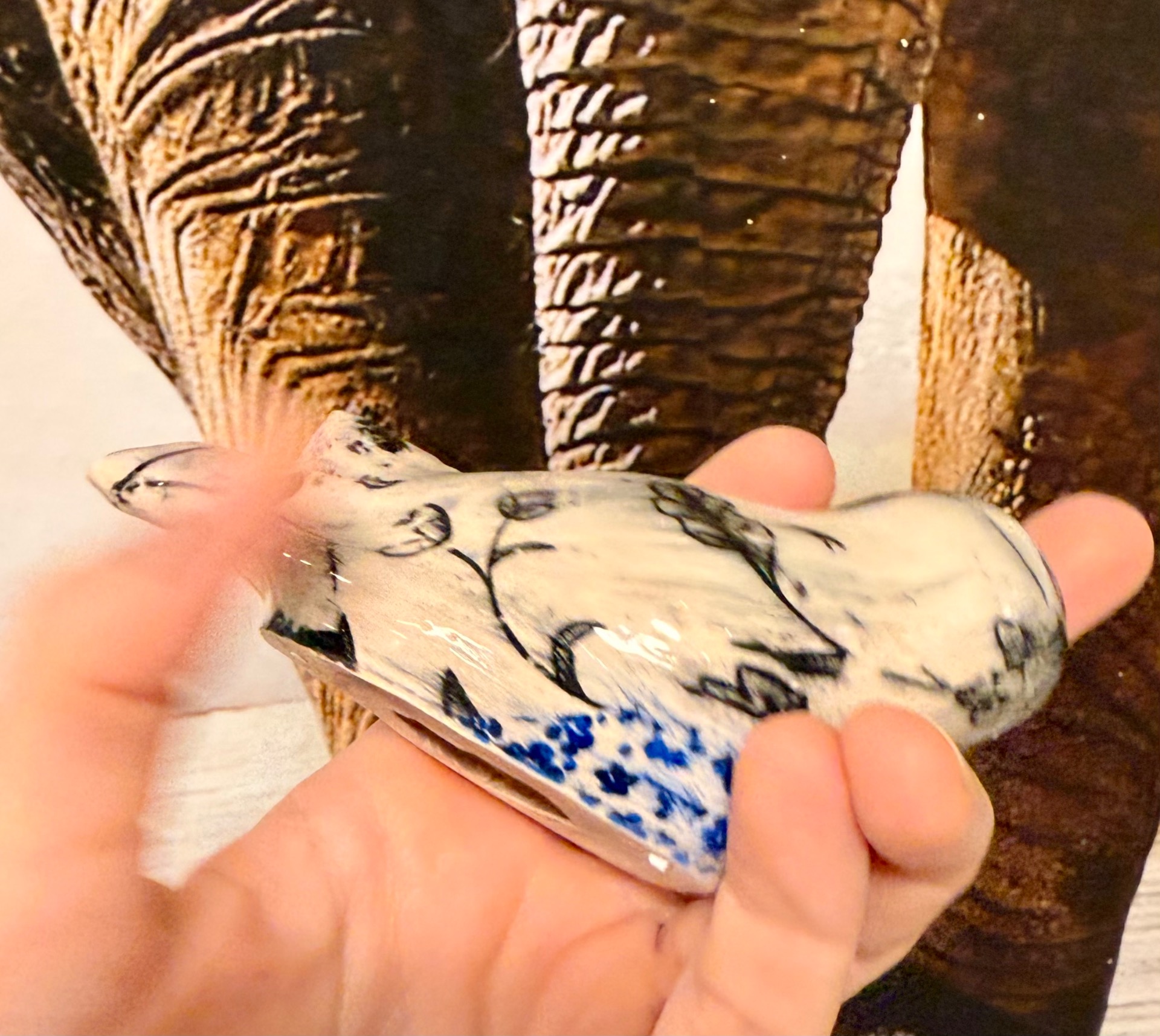 Ručně vyráběné keramické výrobky po přežahu i ostrém výpalu glazury, pečlivě zabalené pro maximální ochranu při přepravě. Na fotografiích je vidět poměr velikosti k ruce i způsob balení. Tapeta na pozadí není součástí produktu.
