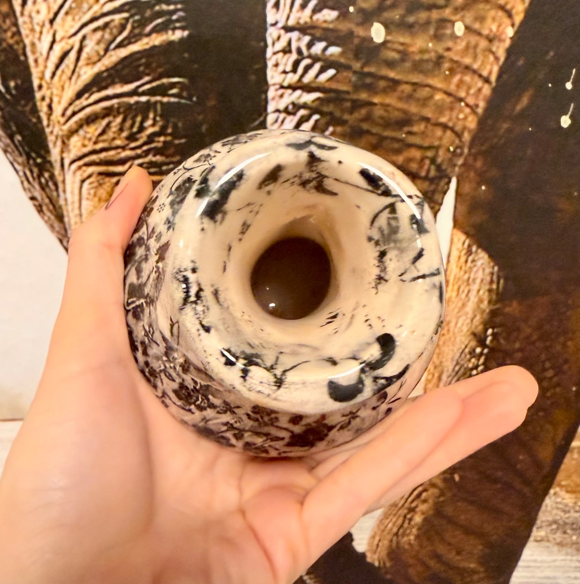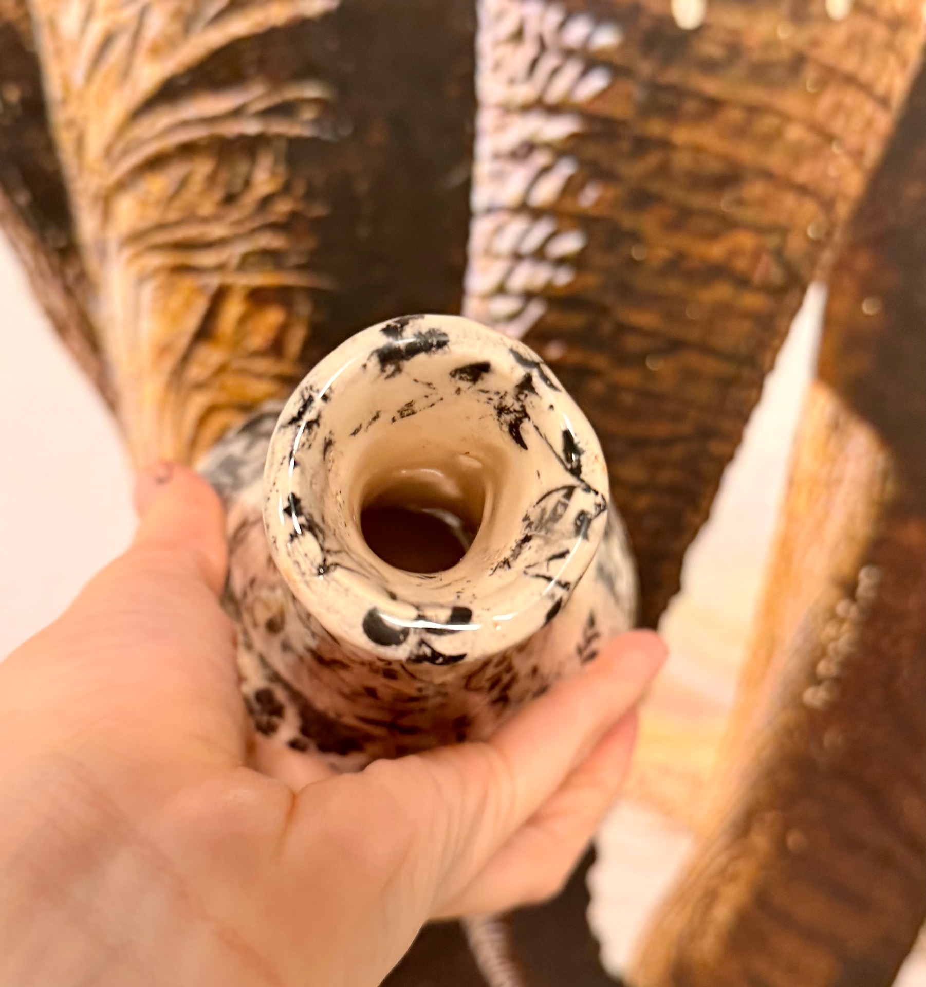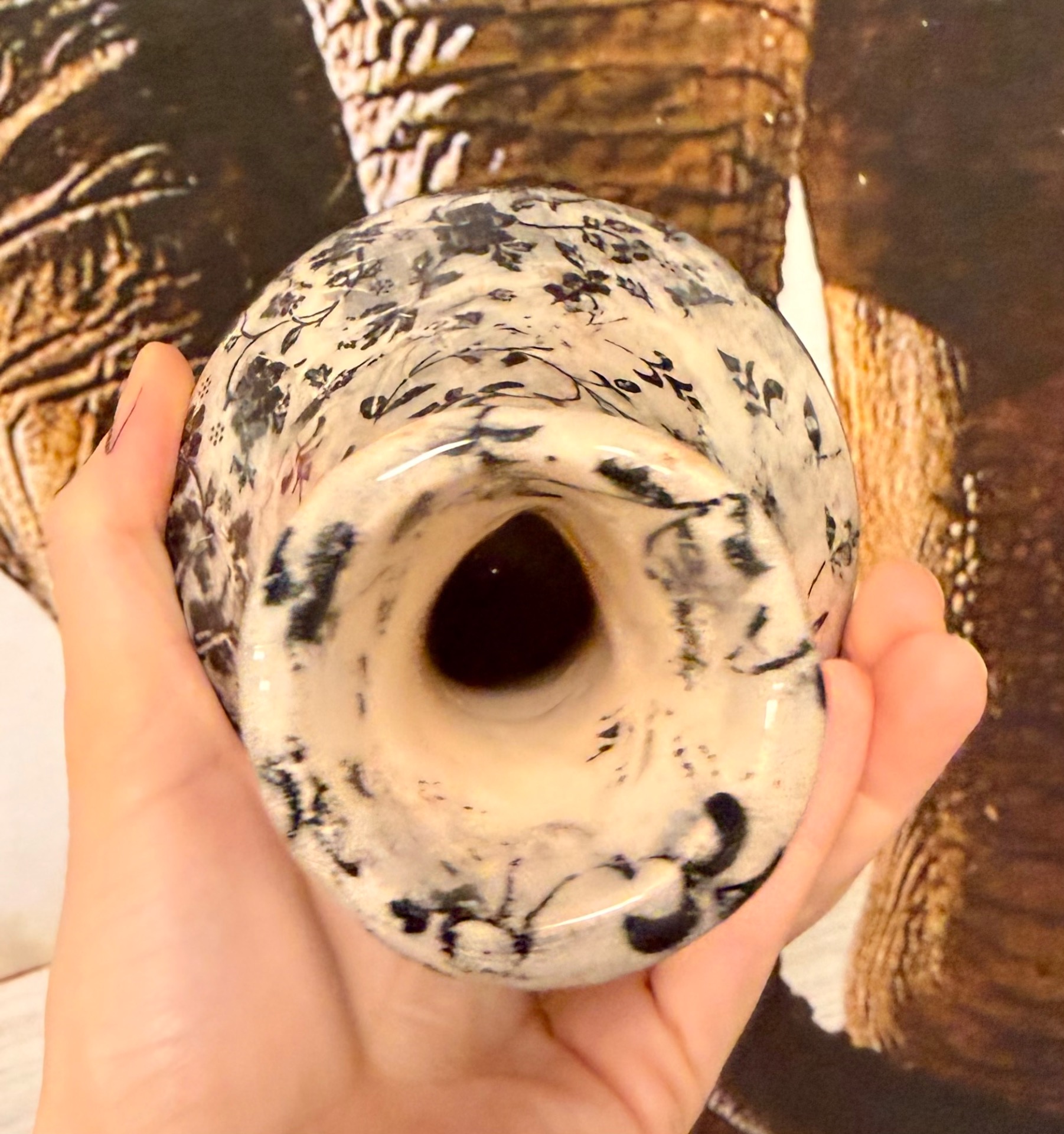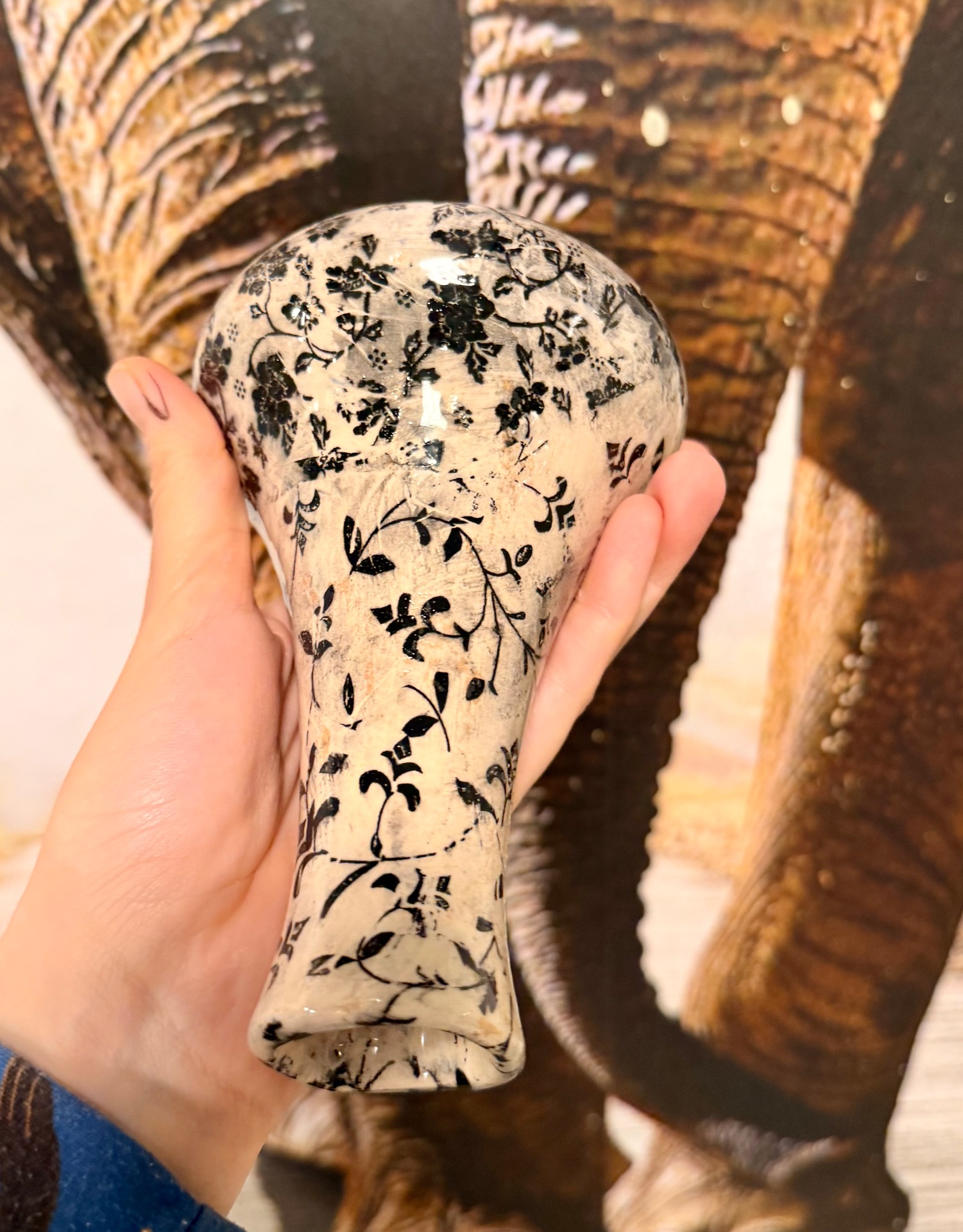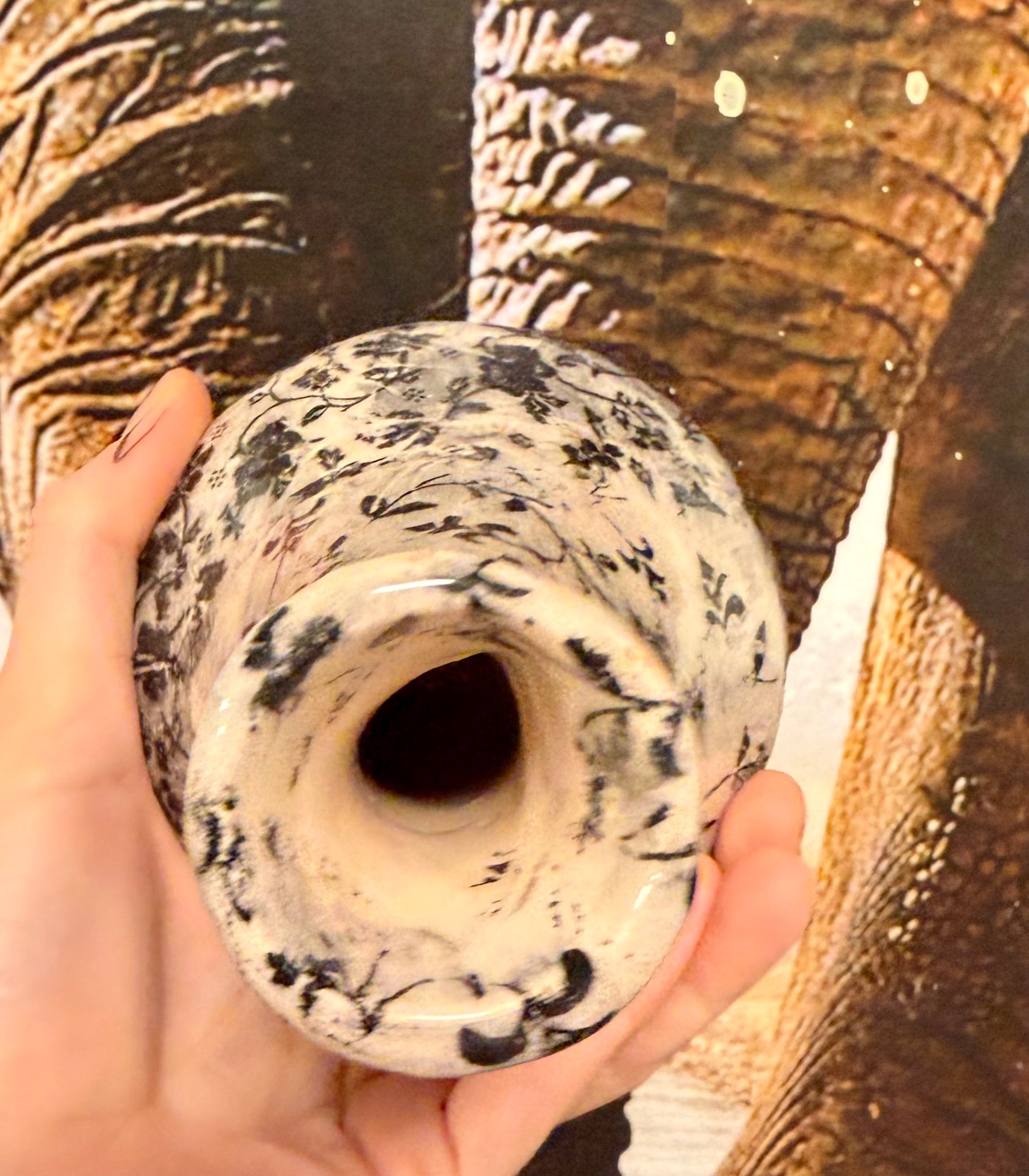 Ručně vyráběné keramické výrobky po přežahu i ostrém výpalu glazury, pečlivě zabalené pro maximální ochranu při přepravě. Na fotografiích je vidět poměr velikosti k ruce i způsob balení. Tapeta na pozadí není součástí produktu.