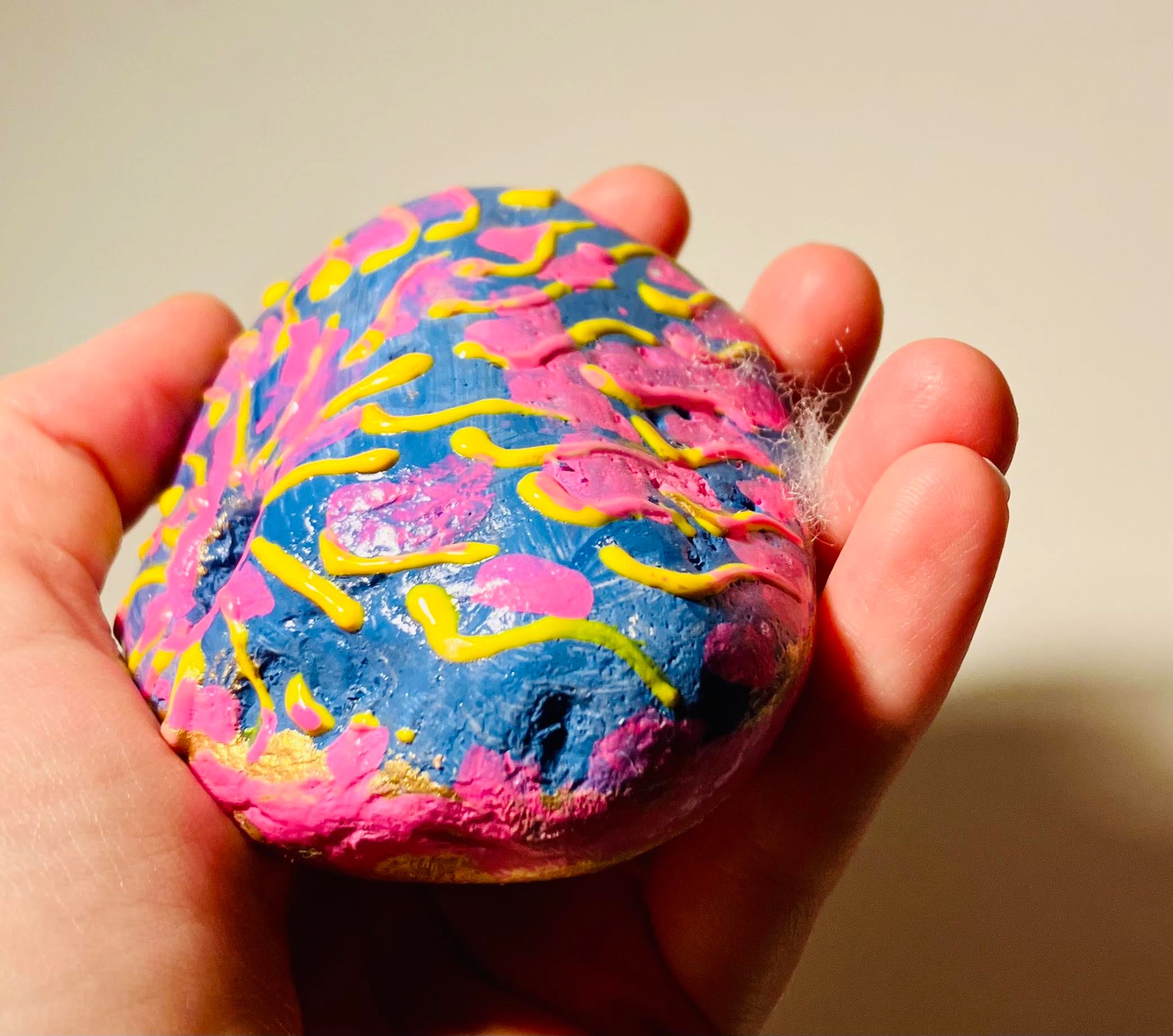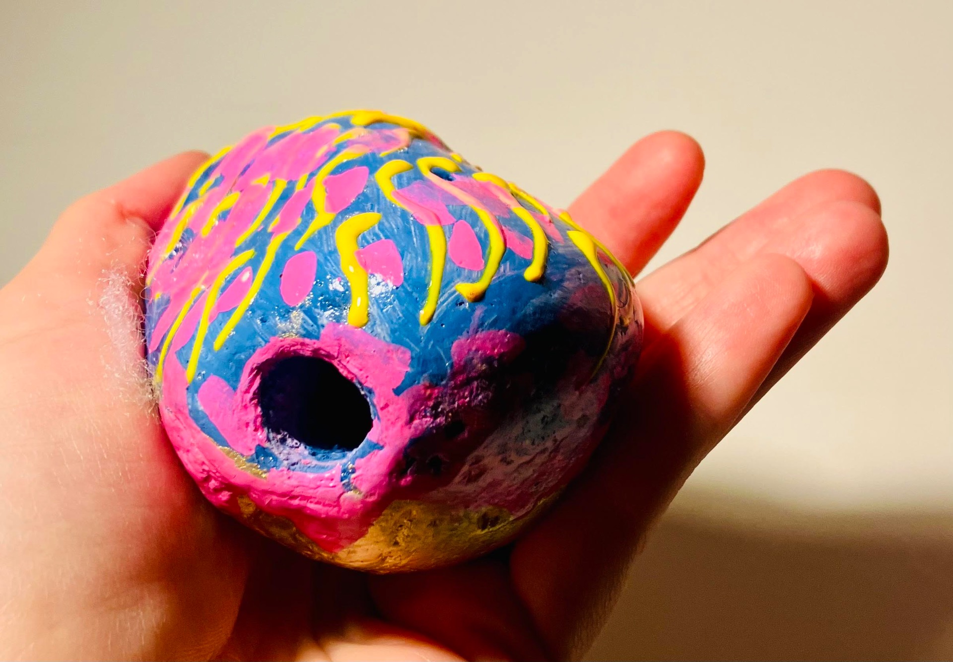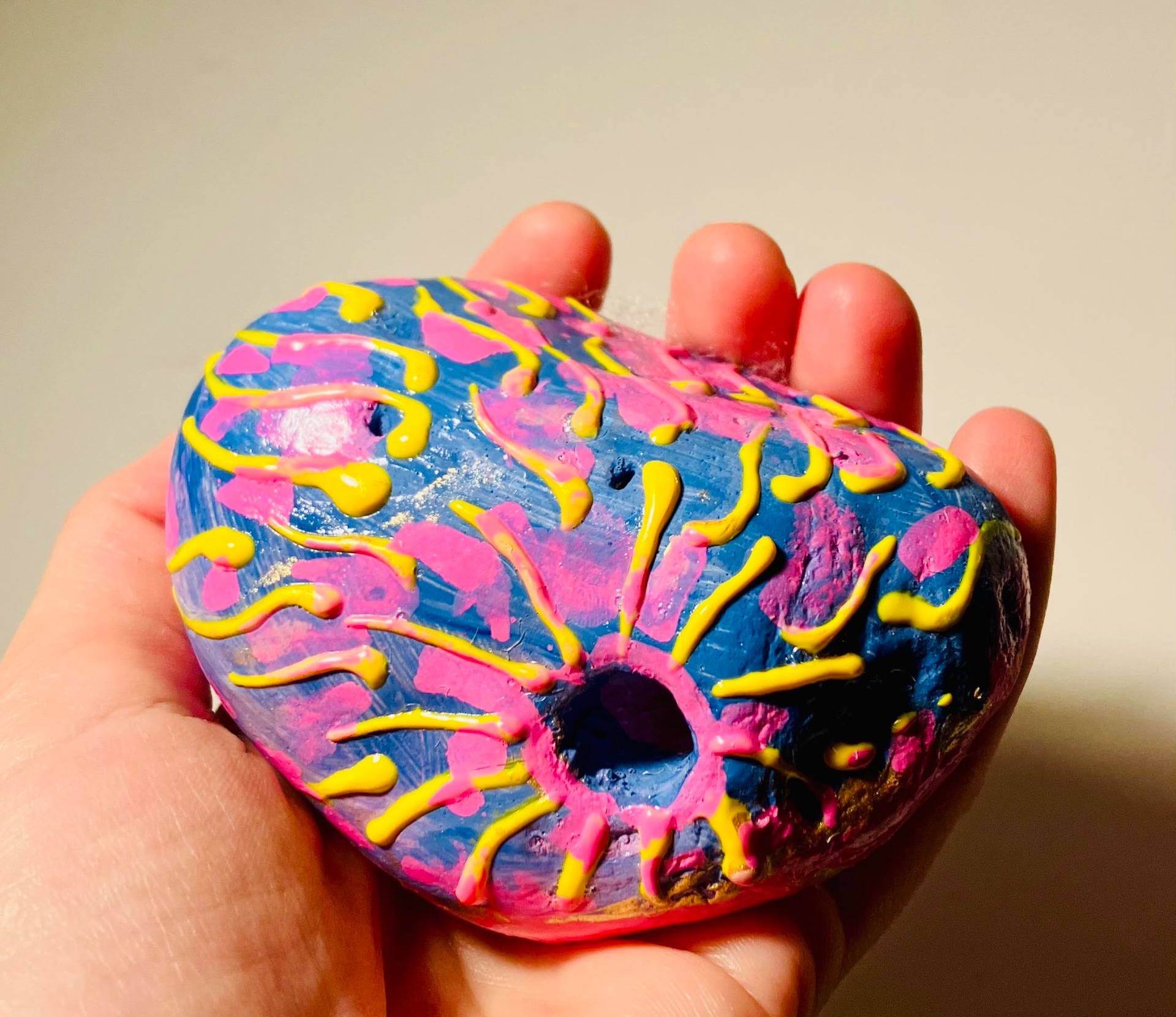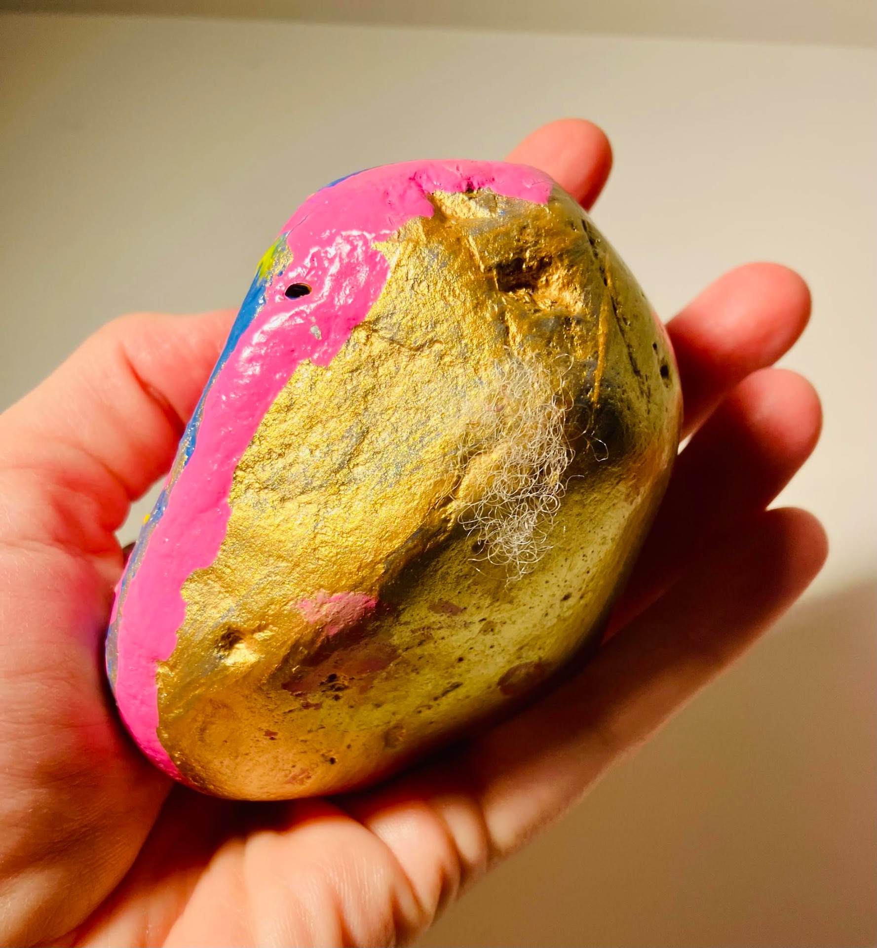 Velký ručně malovaný kamínek s otvory – originální dekorace